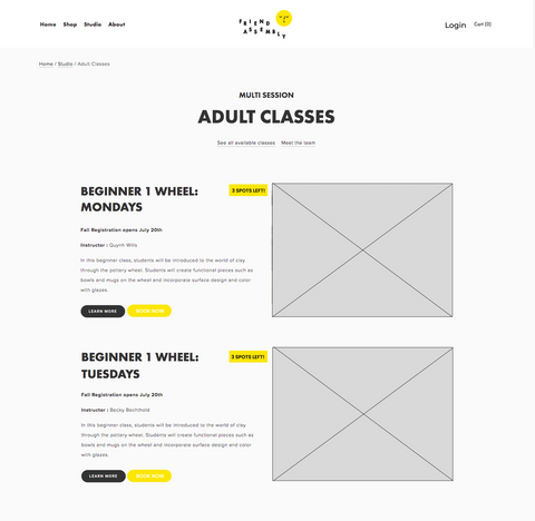 Friend Assembly is a ceramic studio based in Denver, Colorado, offering classes, workshops, and community events for artists of all levels. I worked on revamping their website to improve usability, make class and workshop information easier to find, and create a visually engaging experience that reflects the studio’s creative and artistic identity.